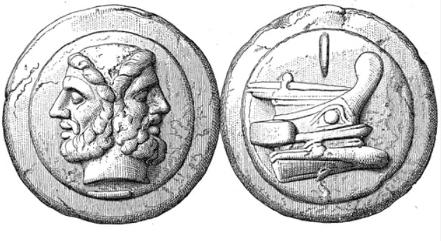 ссылка], где прямо указано: “Prow of galley r., female head decorating prow-stem” (перевод: “Нос галеры, женская голова, украшающая носовую часть корпуса” [