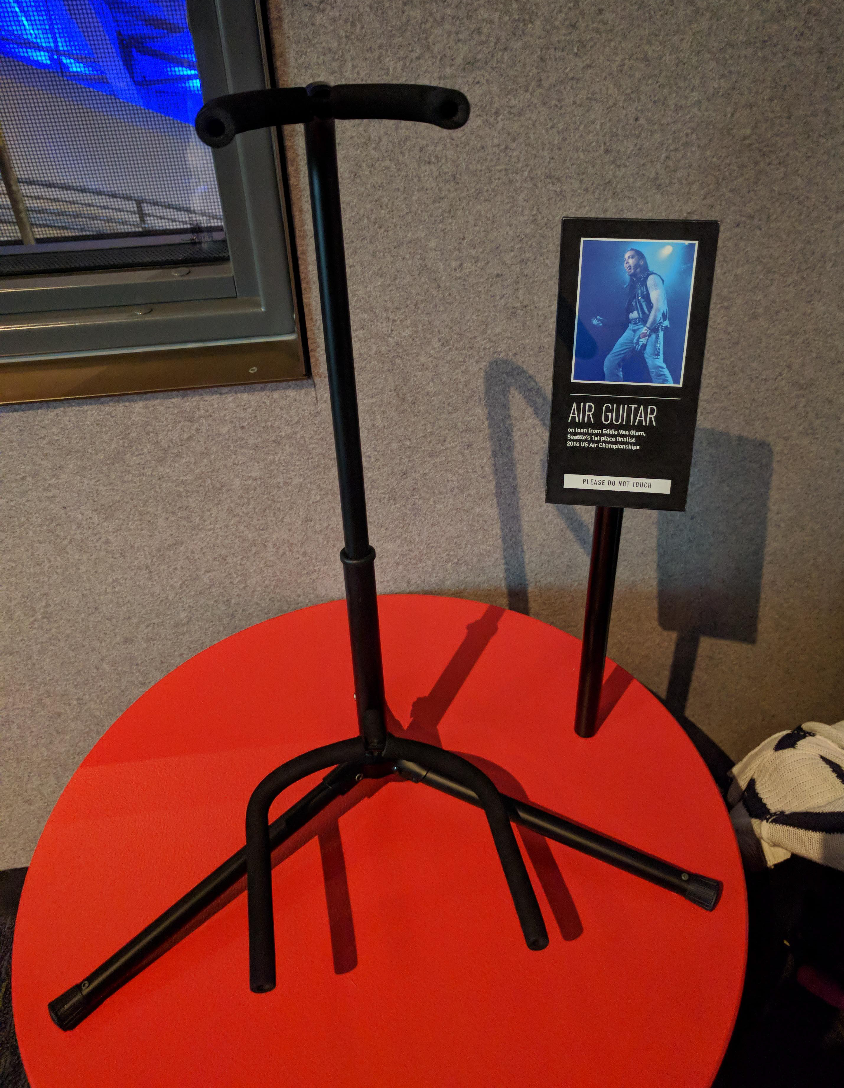 К сожалению, в упомянутом в вопросе музее отсутствует такой экспонат, как "воображаемые барабаны", а вот экспозиция из множества гитар, в т.ч. "воздушной" - есть. 1. ссылка 2. ссылка Вердикт: ОТКЛОНИТЬ (3:0)