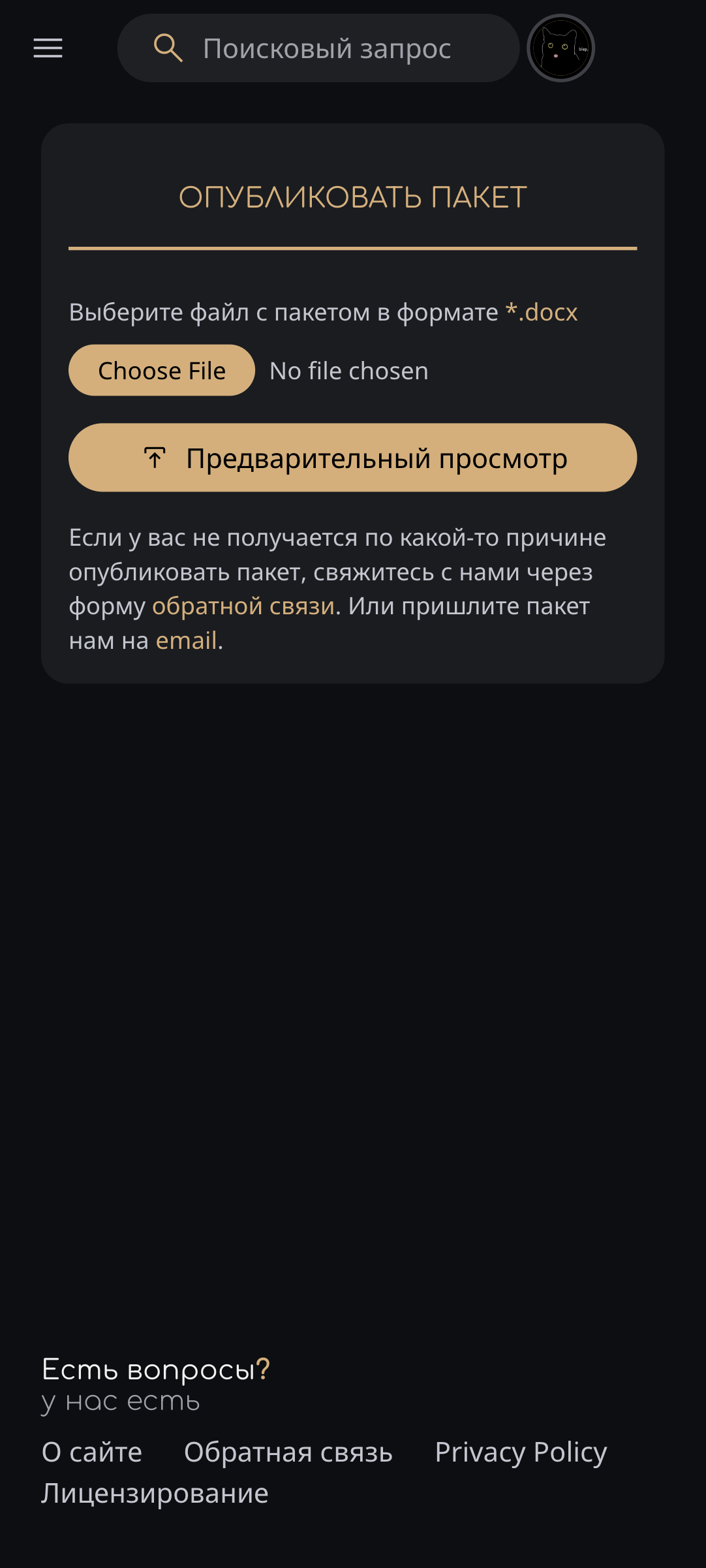 Когда все данные проверены и исправлены, нажмите кнопку Опубликовать пакет. Вы будете перенаправлены на страницу готового пакета.