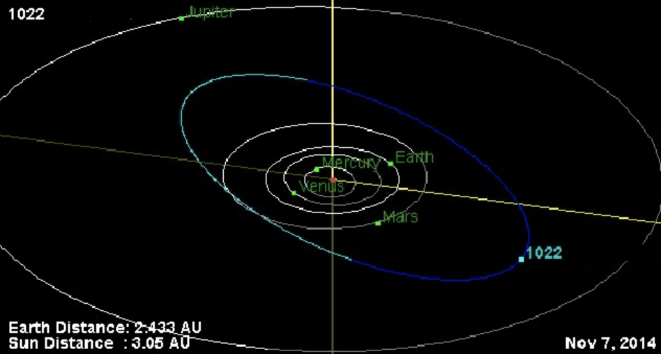 В историческом романе Стефани Торнтон ОНА рассматривает кольца на своей руке. Перед вами Орбита астероида ОНА и его положение в Солнечной системе. Назовите ЕЁ.