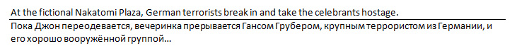 Перед вами цитаты из англоязычной и русскоязычной статей Википедии о фильме "Крепкий орешек", в каждой из которых мы пропустили одно слово. Напишите оба слова в правильном порядке.