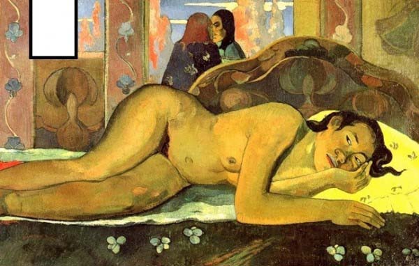 По одной из версий, эта картина Гогена, которая называется английским словом, изображает депрессию его молодой жены. Она задается вопросом, скоро ли придет муж, и опасается худшего. Кого мы закрыли на этой картине белым прямоугольником?