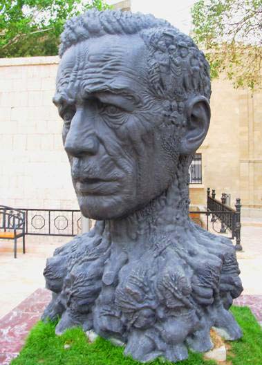 На карикатуре Сергея СычЕнко алкоголик спит лицом в тарелке. Голову алкоголика карикатурист позаимствовал у НЕГО. ОН упоминается одним интернет-пользователем в описании памятника поэту ВахИду, фотография которого перед вами. Назовите ЕГО.