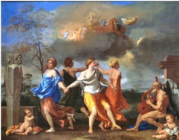 В этом вопросе ИКС и АЛЬФА заменяют другие слова. Картина Николя Пуссена «Танец под музыку времени» построена по классическим правилам. Согласно одной статье, руки девушки в белой накидке словно лежат на ИКСАХ, а нижняя планка рамы оригинальной картины является АЛЬФОЙ. Ответьте, что можно определить, используя ИКС и АЛЬФУ.