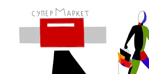 На розданной вам версии одной интернет-карикатуры мы уподобились учительнице русского языка из анекдота и исправили "ошибку" на вывеске магазина. Восстановите исходный вариант вывески согласно задумке карикатуриста.