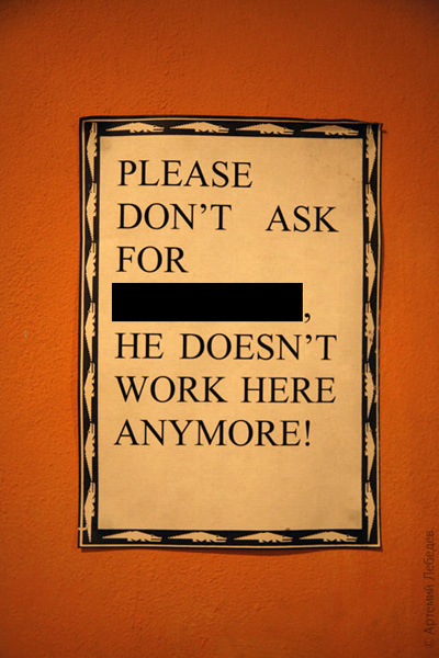 На розданной вам картинке закрыто одно слово. По мнению любителя сувениров Артемия Лебедева, авторы этого объявления для туристов [ПРОПУСК]. Напишите трехсловный фразеологизм, пропущенный нами в предыдущем предложении.