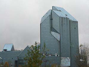 Здание, которое вы видите на раздаточном материале, часто называют "Голубой ИКС". Среди продукции завода "ИКС" есть и марка, в названии которой ее создатели сыграли на популярности известного человека. Что мы заменили словом "ИКС"?