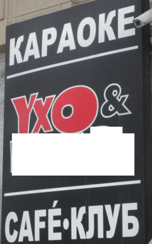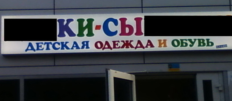 На фотографии мы закрыли восемь букв в названии магазина. Воспроизведите это название, состоящее из двух рифмующихся между собой слов, написанных через дефис.