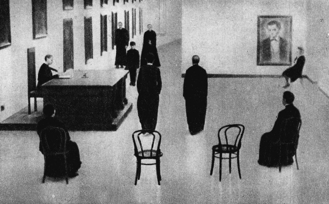 В кинофильме "Святой год" герой Жана Габена, выбравшись из тюрьмы после долгих лет заключения, гуляет по дворику старой церкви, расширенной и перестроенной в модернистком стиле, и слушает, как священник благословляет молнию, ударившую в дерево в церковном саду. Аналогичную по смыслу речь выслушал некий "солдатик", только вместо молнии, ударившей в дерево, упоминался другой процесс. Что это за процесс?