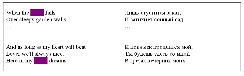 Перед вами отрывок из песни Питера де Роуза. Эта песня очень нравилась бабушке Ричарда. Напишите два слова, которые мы дважды пропустили в этом отрывке.