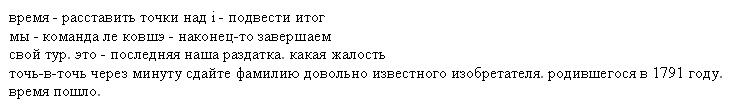 Перед вами надпись, которую не так давно можно было видеть в выпуске американской телевизионной программы. В этом выпуске говорилось, помимо прочего, о невозмутимости русских людей в неземных условиях. Какие буквы мы пропустили в розданном вам тексте?