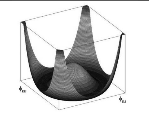 Перед вами пример зависимости потенциала Хиггса от значения различных компонентов поля. Многие физики, подразумевая, что столь долгожданное открытие бозона Хиггса повлечет за собой другие открытия, называют бозон "бозоном ЕЕ". Назовите ЕЕ двумя словами.