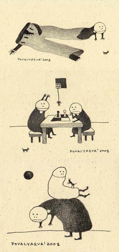 2. На карикатуре художницы Поваляевой вы видите писателя. Назовите фамилию его партнера.