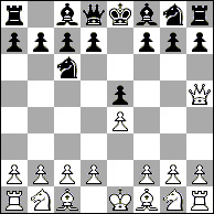 Как-то раз некий американский миллионер пригласил к себе на обед двух знаменитых шахматистов — Эммануила Ласкера и Гезу Мароци. Перед обедом он предложил им сыграть партию, но шахматистов ожидал сюрприз — все фигуры были выполнены в виде стеклянных бутылочек, заполненных различными спиртными напитками, размеры и градус которых зависели от ценности фигуры. По условиям игры, после взятия фигуры противника игрок обязан выпить всё ее содержимое. После двух ходов (1. e4 e5 2. Фh5 Кc6) на доске установилась розданная вам позиция. Отметьте на раздаточной карточке то поле, на которое сделал свой следующий ход Ласкер, игравший белыми, если известно, что партию он выиграл.