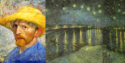 Перед вами — две картины Ван-Гога. Первая — автопортрет — написана при свете дня. Вторая — "Звездная ночь над Роной" — написана на улице при свете свечей — иначе художник не смог бы увидеть мольберта и холста. В одной руке художник держал палитру, в другой — кисть... А где располагались свечи?