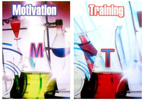 В серии плакатов, два из которых мы вам раздали, элементы успеха стилизованы под химические: однобуквенный символ и слово. Сочетание слова и символа, изображенное на одном из плакатов этой же серии, использовалось нами и при подготовке этого вопроса. Напишите это сочетание.