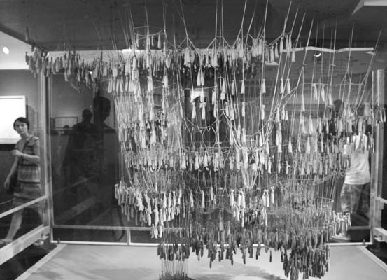 Это причудливое сооружение, состоящее из большого количества подвешенных на веревках мешочков с песком, было создано с практической целью. Назовите его создателя.