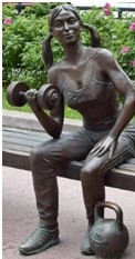 Перед вами часть скульптурной композиции, установленной в подмосковном городе. Второй фигурой композиции, которая от вас скрыта, является исполнитель произведения, героиней которого является сама девушка. Назовите её имя.