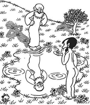 На рисунке Жана Эффеля Бог отпускает в море только что сотворенного кита. В черном ящике лежит предмет, который привязан к хвосту кита. Что в черном ящике?