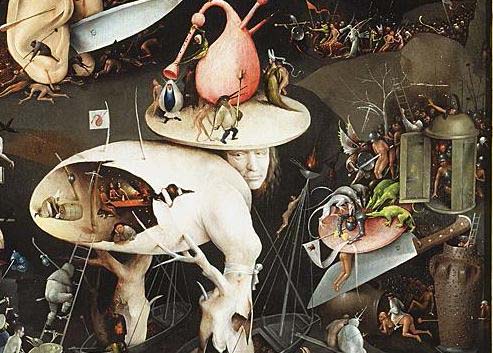 Перед вами фрагмент картины Иеронима Босха. Согласно мнению многих исследователей, творчество Босха тесно связано с голландскими ИМИ. На персонажа компьютерной игры ОНИ воздействовали так же, как и на персонажа английской литературы. Напишите имя компьютерного персонажа.