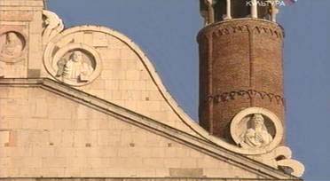 Перед вами фронтон собора одного итальянского города. По мнению исследователей, этот фронтон мог попадаться на глаза одному из жителей этого города. Назовите этот город.