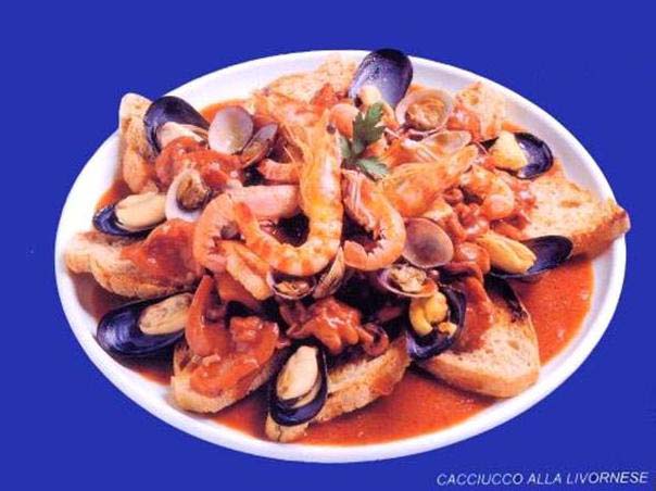 В Ливорно варят знаменитый рыбный суп "каччукко". Традиция требует, чтобы в супе содержалось по меньшей мере так же много сортов рыб, сколько... Чего и где?