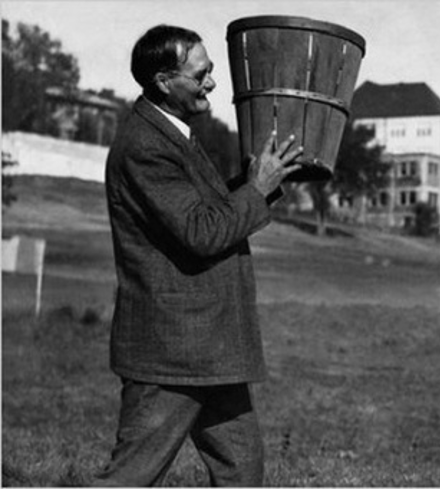 Перед вами фрагмент фотографии, на котором изображен Джеймс Нейсмит, преподаватель Спрингфилдской тренировочной школы. Ответьте двумя словами, что держит в руках его жена на скрытой части фотографии?