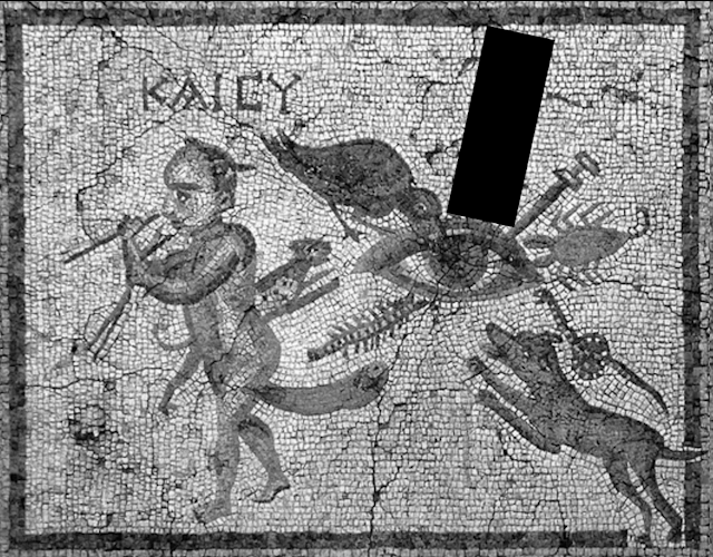 1. Раздаточный материал относится к первой части дуплета. Перед вами римская мозаика, защищавшая от сглаза. Эта мозаика располагалась при входе в дом и была первым, что встречало посетителя. Что мы скрыли на розданном вам изображении?