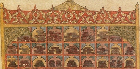 На этом фрагменте арабской миниатюры изображена ОНА, которая находилась в ЭТОМ городе. Назовите ЕЁ и ЭТОТ город словами, начинающимися на одну и ту же букву.