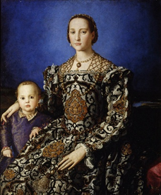 После этого вопроса будет пауза. На портрете изображена флорентийская герцогиня Элеонора Толедская. Во времена Элеоноры Флоренция была мировой столицей роскошного текстильного производства, поэтому портрет еще и является ЕЙ. Слово “ОНА” можно перевести как «выкрикивать». Какое слово мы заменили словом ОНА?