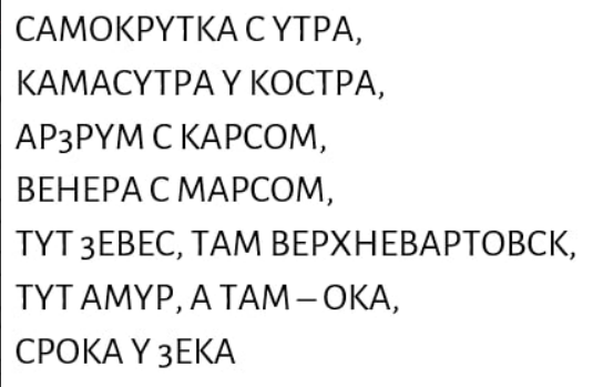 В 1990-х в русскоязычном сегменте интернета были популярны конкурсы необычных стихотворений. Участники конкурсов должны были придерживаться тех же правил, которым следуют при составлении… Чего?