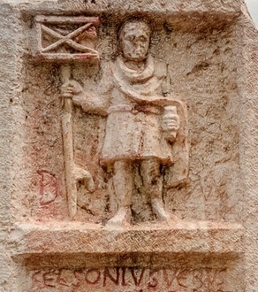 На раздаточном материале – надгробие Фельсония Вера, служившего во Втором Парфянском легионе. Это – единственный римский легион, штандарт которого был… Каким?