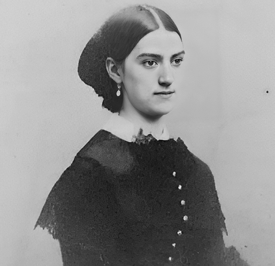 Вероятно, прежде вы не видели лицо этой женщины. Современники отмечали её черные выразительные волосы. По словам Сильви́ Обена́с, это доказывает, что упомянутая женщина была... Ответьте, используя фамилию: кем именно?