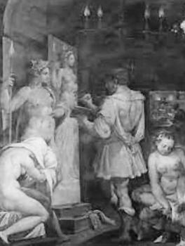 Автор вопроса считает, что за правильный ответ на этот вопрос хватит и половины балла. Перед вами картина XVI века «Студия художника». Она принадлежит кисти самого ИКСА. Назовите ИКСА.