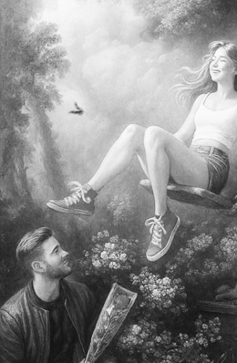 Перед вами то, как, по мнению нейросети, могла бы выглядеть известная картина XVIII века, если бы её автор был нашим современником. Судя по всему, нейросеть приняла ЕЁ на оригинале картины за бабочку. Другая ОНА помогла героине найти счастье. Назовите ЕЁ.