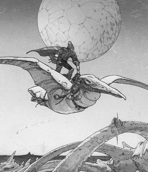 526. Перед вами фрагмент комикса художника Мёбиуса, издававшегося в 1970-х. Известный режиссер отмечал, что при создании одной из своих работ вдохновлялся этим комиксом Мёбиуса. Как Мёбиус назвал свою дочь, родившуюся в 1995 году?