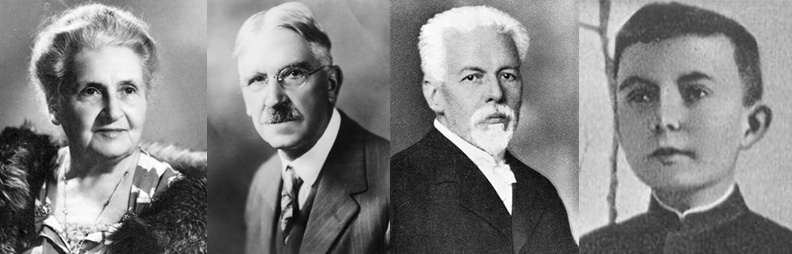 Этот своего рода коллектив из четырех человек был образован в 1988 году. Про женщину каждый из вас слышал. Второй и третий — Джон Дьюи и Георг Кершенштейнер. Назовите известное произведение четвертого двумя словами, начинающимися на одну и ту же букву.
