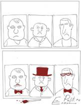 Перед вами карикатура Сергея Ёлкина, размещенная на сайте polit.ru [полит точка ру] в феврале 2011 года. На этой карикатуре мы скрыли от вас две надписи. Вторая надпись отличается от первой заменой двух букв. Воспроизведите вторую надпись.