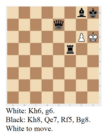 Для решения этой шуточной шахматной задачи необходим меч. Назовите действие, которое должен совершить белый король, чтобы победить.