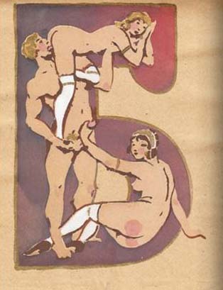 Созданная Сергеем Меркуровым в 1931 году эротическая азбука ЕМУ понравилась. А представленная картинка якобы на НЕГО и намекает. По сюжету одного рассказа, вскоре после секса с двумя девушками ОН, теребя их бантики, произносит фразу, переставив буквы в своей фамилии. Назовите ЕГО фамилию и общее имя девушек.