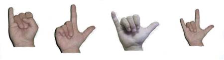 В американском языке глухонемых этот жест означает букву I, этот жест — букву L, этот жест — букву Y. Что означает этот жест?