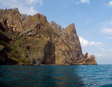 Перед вами вид на крымское побережье [ПРОПУСК]. Автор вопроса неожиданно для себя узнал, что название этого местечка на самом деле происходит от греческого слова "парактиос", что означает "береговой". Какие три слова мы пропустили?