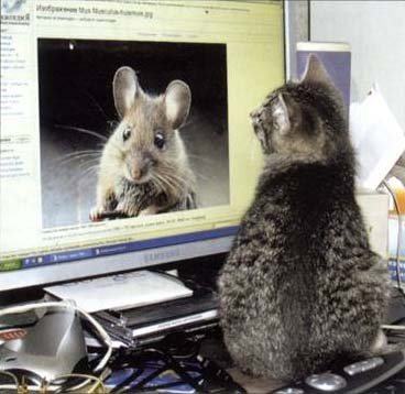 Посмотрев на предлагаемую вам картинку, вы могли бы подумать, что кошка наблюдает за изображением мыши на экране. Но на самом деле она заинтересовалась совсем другим. Что вызвало ее интерес?