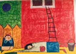 Мы начали тур с детского рисунка, а закончим его вполне взрослой карикатурой. Представьте: два балкона, один под другим. На каждом балконе по человечку. Нижний человечек кидает в верхнего кирпичи. Они не долетают и, возвращаясь, ударяют по голове нижнего. Верхний же человечек спокойно кидает кирпичи вниз, и они тоже падают на голову нижнему человечку. Заполните пропуски в подписи под карикатурой: "(пропуск) сверху и (пропуск) снизу".
