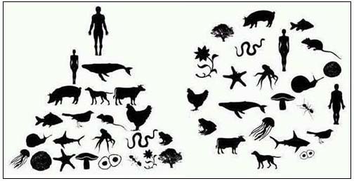 На одной картинке человек ставит себя выше всего, что есть в природе, на другой — сосуществует с природой. Очень короткие названия картинок различаются лишь одной буквой. Напишите оба названия.