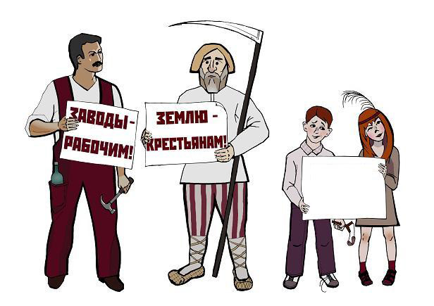 На рисунке Ольги Лаврентьевой мы закрыли лозунг, который держат мальчик и девочка хулиганского вида. Напишите два слова, которые чаще всего следуют за текстом этого лозунга.
