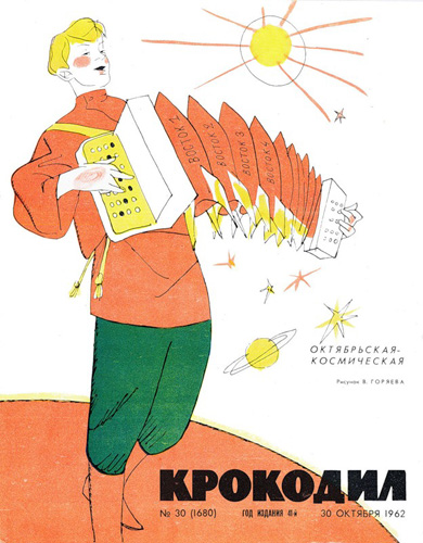 В сообществе ru_cosmos опубликовали подборку советских карикатур. В том числе и эту, к которой поступил следующий комментарий: ""Восток" уже [ПРОПУСК]". Восстановите пропуск одним словом.