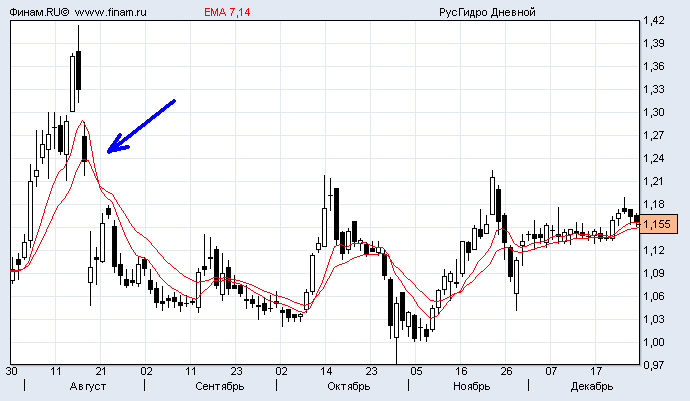 Перед вами график динамики курса акций компании "РусГидро". Напишите, используя слово, пишущееся через дефис, чем объясняется указанное на графике падение.