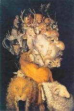 Вы видите картину Арчимбольдо, наполненную различной символикой. Например, рога животных на голове изображают корону. Ответьте абсолютно точно, что означает баран, которого вы видите справа внизу.