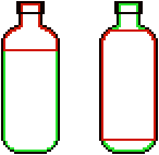 Перед вами две абсолютно одинаковые пластиковые бутылки, к примеру, полуторалитровые, от "Пепси". Красным цветом обозначены те их части, которые автор вопроса предлагает вырезать, чтобы соорудить из них некую полезную конструкцию. Назовите эту конструкцию и третий (недостающий) ее компонент. Пробка на горлышке от левой бутылки должна быть закручена.